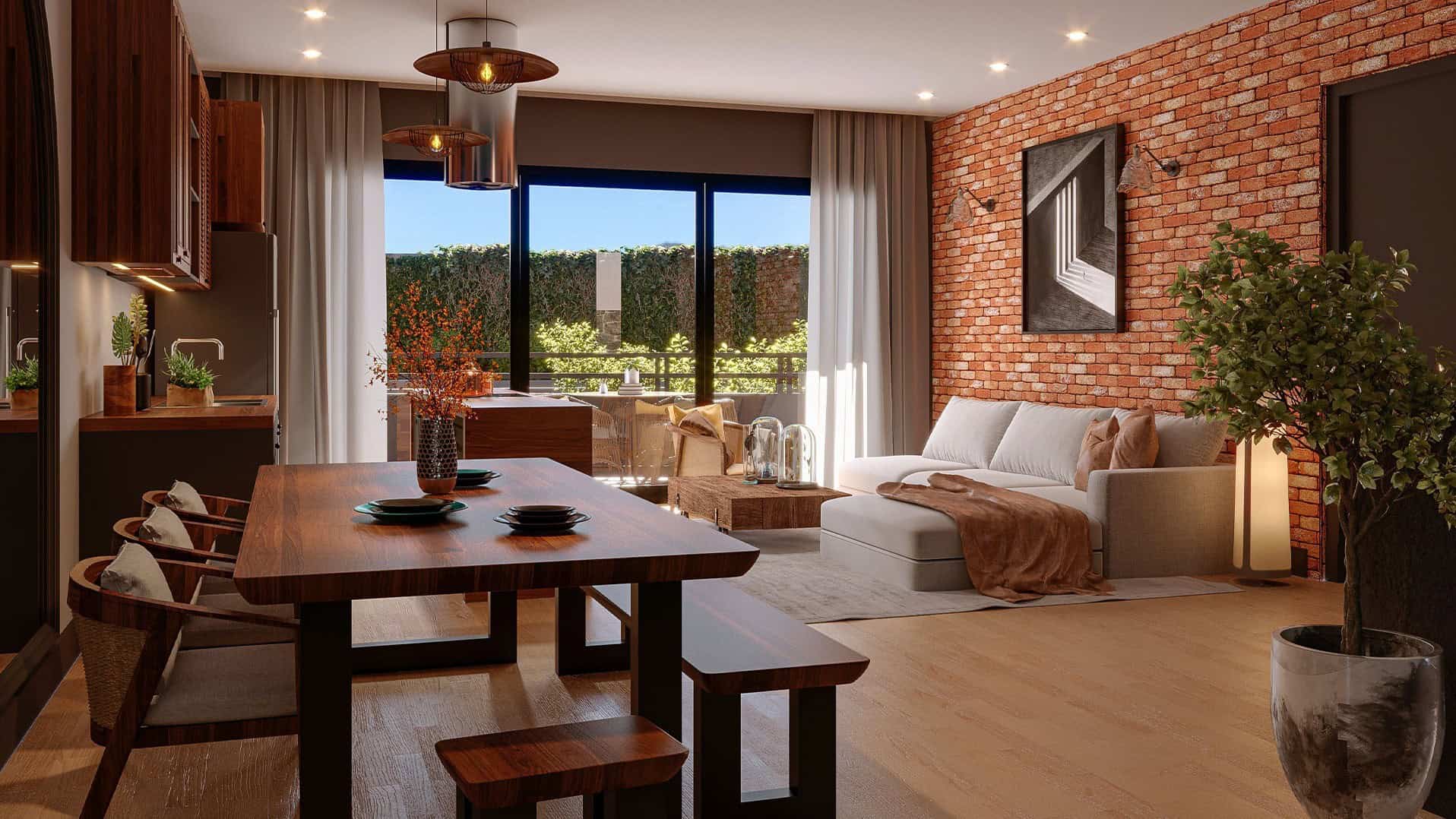 Departamentos con terraza llenos de luz natural y aire fresco. Conexión total con el entorno.